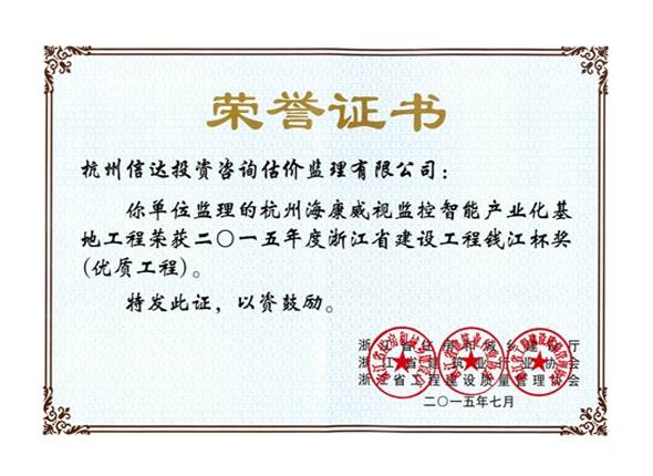 杭州市海康威視監(jiān)控智能產(chǎn)業(yè)化基地工程(2015年度錢江杯工程)