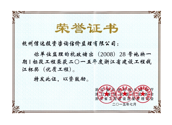 杭政儲出(2008)28號地塊一期I標(2015年度錢江杯)