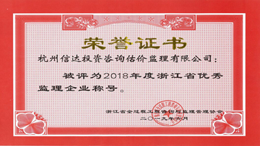 我公司獲得2018年度浙江省優(yōu)秀監(jiān)理企業(yè)稱(chēng)號(hào)