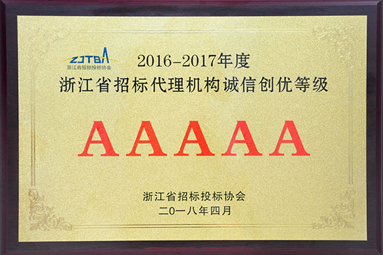 公司喜獲浙江省招標代理機構誠信創優5A級單位稱號